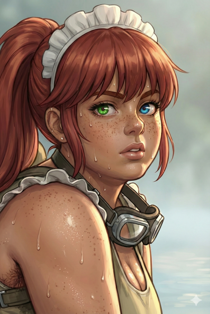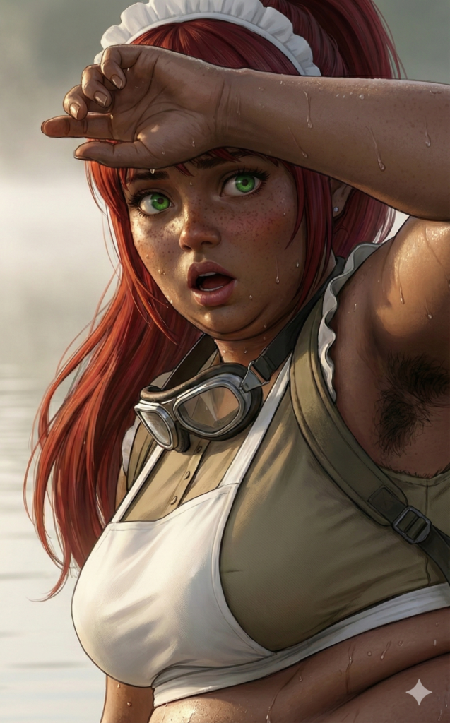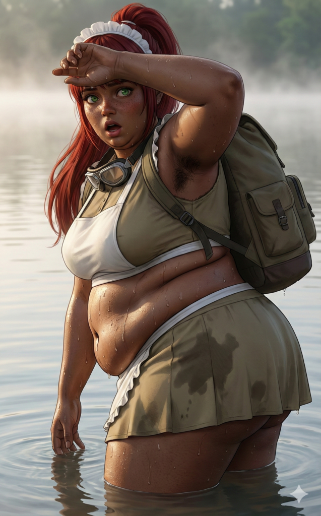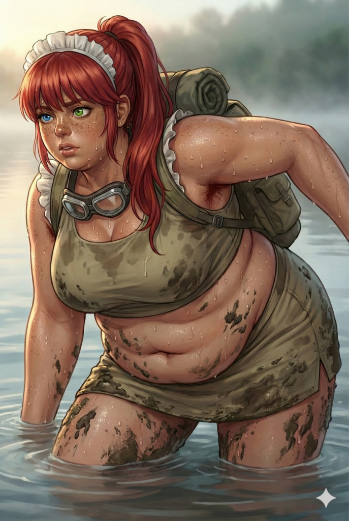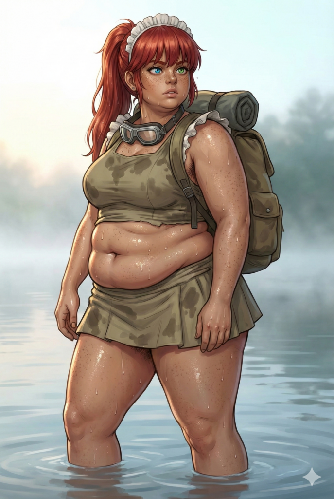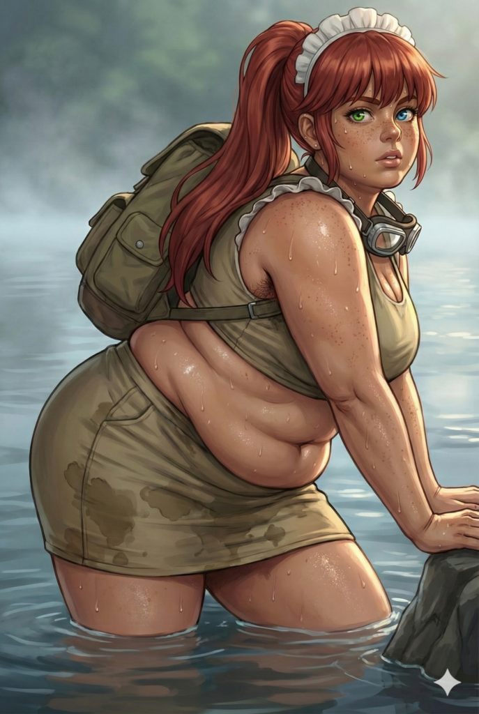 ヒグマに襲われて湖に逃げ込んだメイドは、恐怖のあまり粗相していることに気づいた。